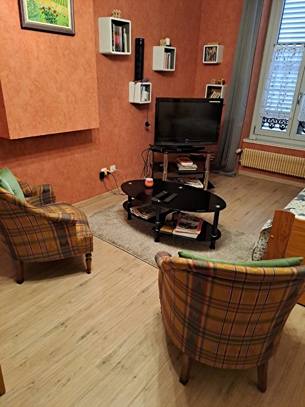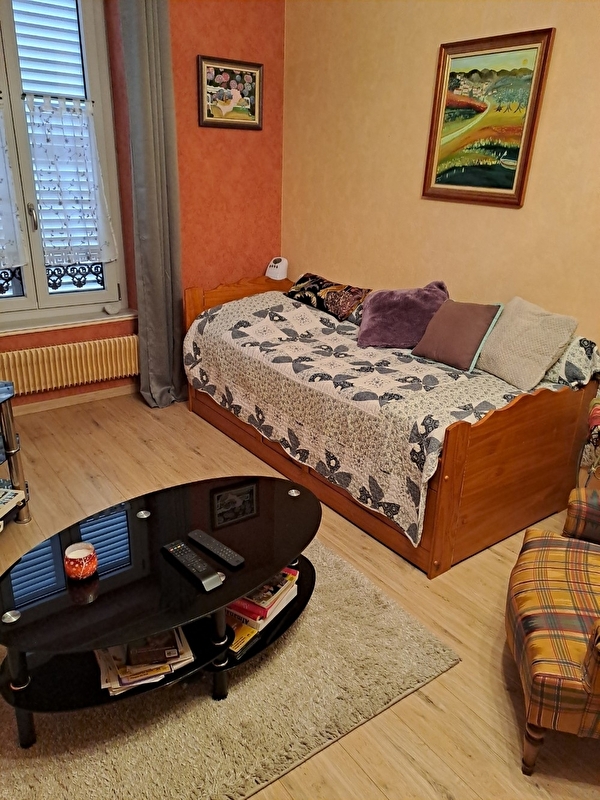 Centre ville, cuisine équipée, chambre avec grand lit, salon avec banquette-lit. Internet, TV, parking privé, salle d'eau, wc, possibilité de location de draps : 10 euros /lit